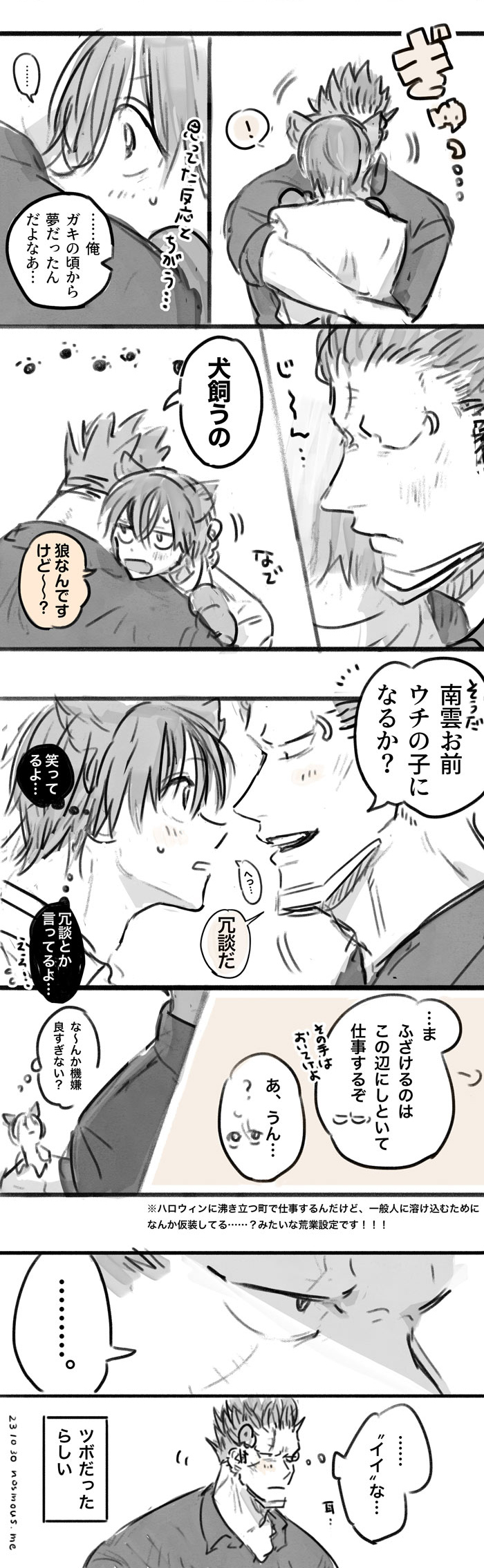 思ったよりページ数も増えたので、ポイピクに下書きをちょっと載せました(すぐ股間を弄らせようとする…)