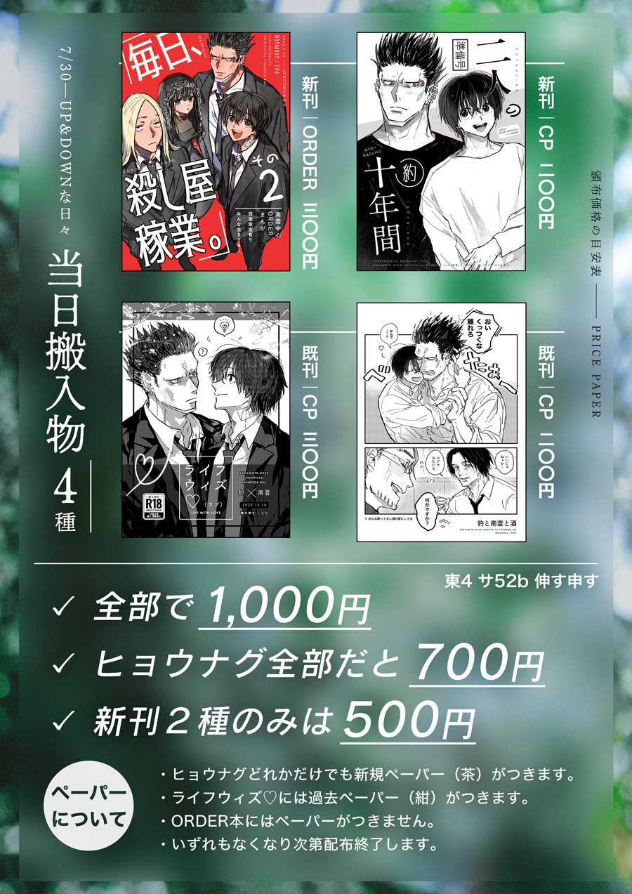 新規ペーパー(茶色)はヒョウナグ全部につきますが、過去ペーパー(紺色)は既刊のライフウィズ♡にしかつきません。すべてなくなり次第配布終了になります。