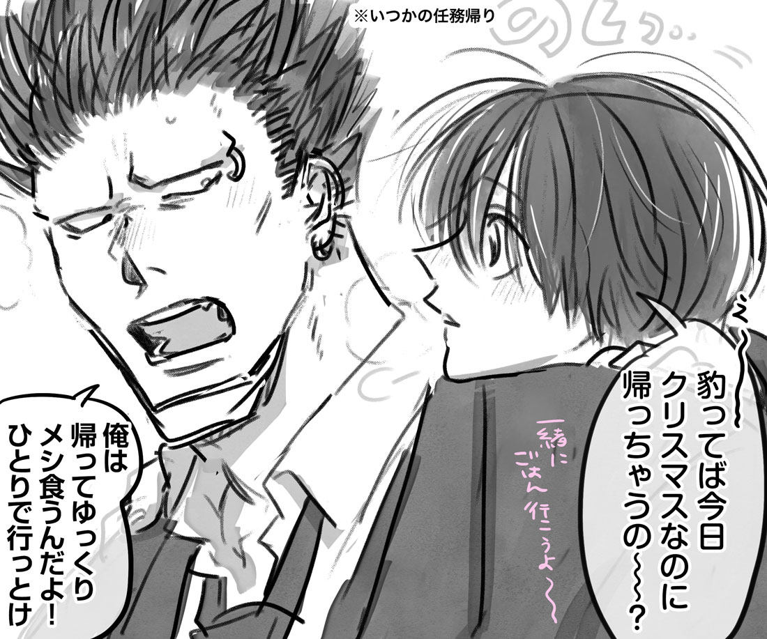 まだ付き合ってないヒョウナグのクリスマスの任務帰り、こういうやり取りがあったらカワイイ。