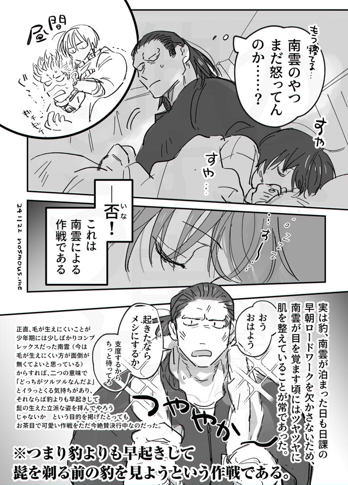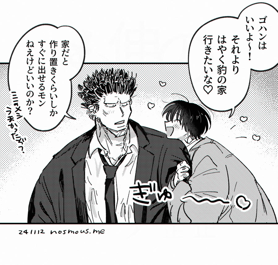 『ちょっと揶揄って慌てさせちゃおうっかな~』と思ってつついたけど、出てきたのはどこまでも真面目で実直でなっちゃんのことを大事に思う豹さんだったので、思わず何も言えなくなっちゃうなっちゃんの図です・・!(解説)