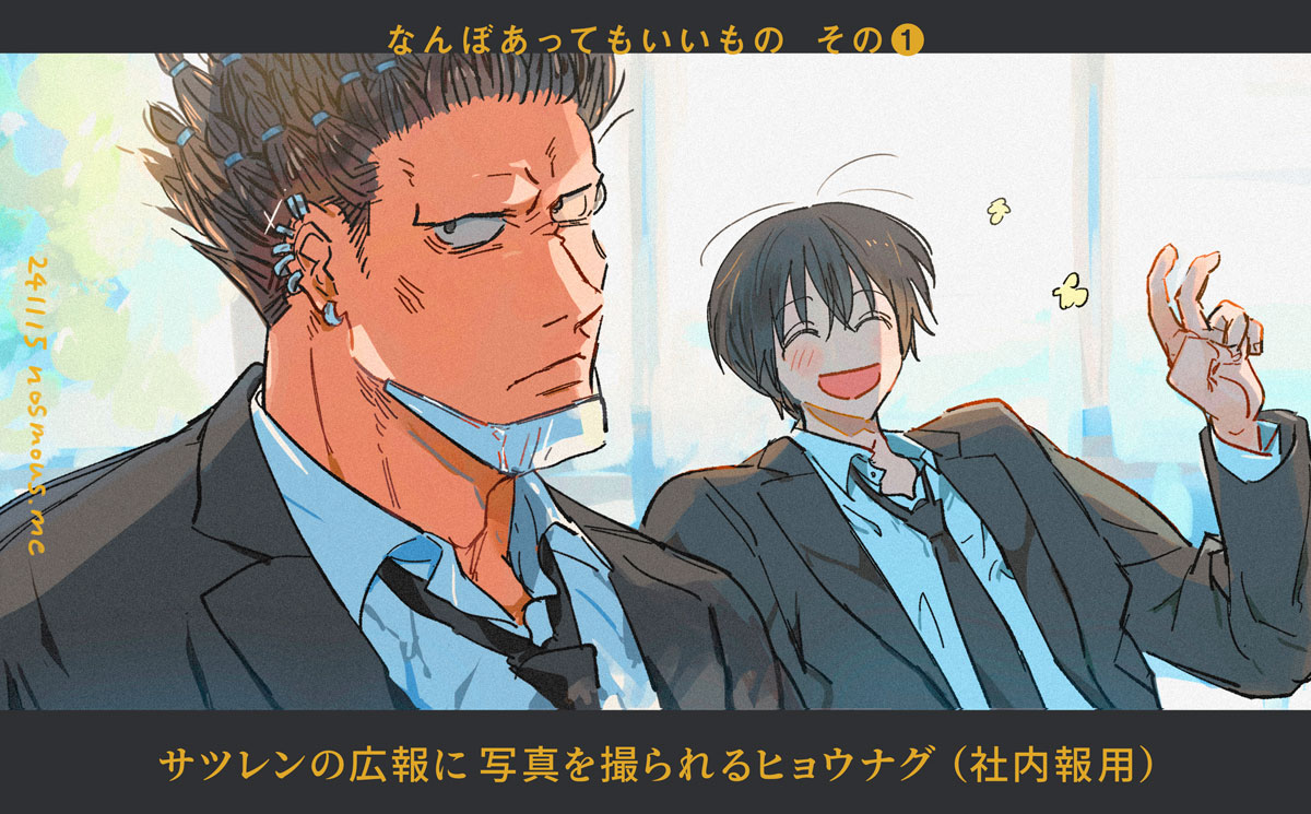 なんぼあってもいいもの その1 ということで、勢いでナンバリングしちゃってるのですがシリーズ化するかどうかは分かりません……が!第三者視点のヒョウナグ、好きなんですよね~。対照的で一見気があわなそうな2人なのに、なんか任務外では何かと一緒にいるじゃん!!みたいなの、とっても好きなんですよ。