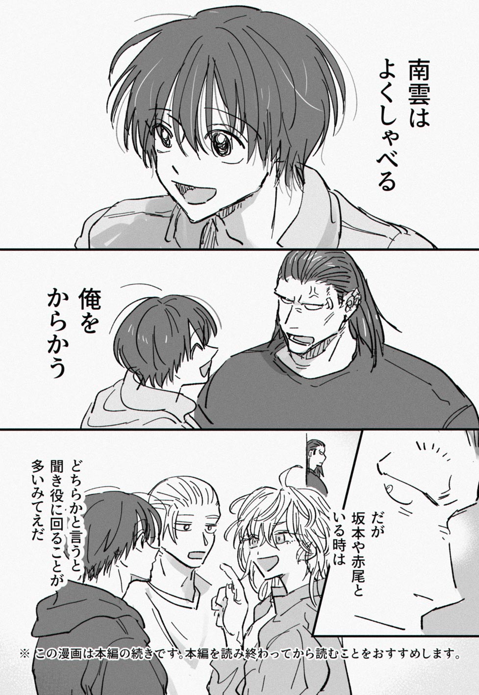 お知らせが遅くなりましたが、実は新刊『BiTE』のノベルティだった本編の続きの漫画をアップしておりました!✊